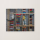 Cute cat sleeping on bookshelf library books jigsaw puzzle