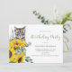 Cute cat and sunflower floral birthday invitation. Pretty watercolor design. Perfect for the cat lover. This invitation is for any age. Easy to change the text.