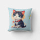 A cute cat throw pillow perfect for baby shower gifts or nursery decoration.