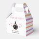 These fun favour boxes feature a hand drawn black cat with pastel accents and a witch hat, along with stars, stripes, and modern styled multicolored typography reading, "TRICK OR TREAT!" Pastel shades of pink, purple, and peach stand out against the white background. Two text templates are included for simple personalisation! Great for a kids' Halloween costume party!
