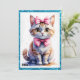 Cute cat with bow happy birthday invitation