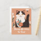 A cute cartoon cat with flowers on the peach background personalised greeting card.