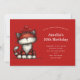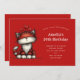 Birthday invitation with a whimsical drawing featuring a big orange red kitty cat.
