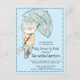 A cute cat with umbrella and boots baby shower by mail invitation come rain or shine blue background for boy. Adorable and whimsical. Personalise with your own information.