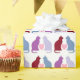 Cute cat silhouette pattern in purple and blues with pink hearts in-between. Glossy wrapping paper.