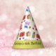 Make your child’s celebration extra special with this Cute Cats and Presents Yellow Green Kids Party Hat! Featuring an adorable handcrafted design, this playful party hat showcases two loveable cats presenting beautifully wrapped gifts, topped with a sparkling star. Set against a light yellow background, this charming illustration brings a whimsical and festive touch—perfect for birthdays, celebrations, and cat lovers alike. Customise it with a special title like "Charlotte’s 6th Birthday" to make the occasion even more memorable. A delightful addition to any party!