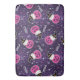 A bath mat with an adorable Halloween themed pattern. Cats in witches hats, sitting on pink pumpkins with purple cobwebs in the background.