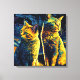 This stunning stretched canvas features a beautiful illustration of a romantic feline cat couple enjoying the dawn in the countryside against a starry sky. The warm hues and intricate details of this design capture the peaceful and romantic moment perfectly.