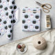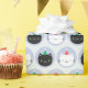 Kawaii repeat pattern of black and white cats wearing red and green striped party hats. Perfect for Christmas, New Year and other celebrations.
