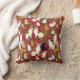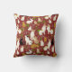 Throw pillow in a whimsical pattern of cats in natural poses, surrounded by green foliage and flowers, set against a burgundy red / maroon background, creating a charming and cosy aesthetic