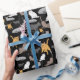 Wrapping paper designed for the cat lover; It features a pattern of illustrations of cute orange, brown, grey, black, and white cats on a black background. The background can be changed to the colour of your choice; just click on the "customise" button and proceed.