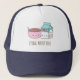A cute cap with a doodle of a bowl of cereal and milk carton. The cereal is in tiny heart shapes and the caption reads "Cereal About You!" Awww...