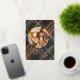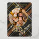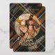 This holiday card stands out with its elegant and unique design. It features a timeless "Happy Thanksgiving" greeting printed in real gold foil, customisable to your preference. The card displays cosy, warm, colourful dark grey, red, and orange brown coloured farmhouse style plaid tartan pattern background. The front offers space for your family name, photo, and the current year, while the back is perfect for adding a personalised seasonal message or poem. It's a stylish way to send your Thanksgiving holiday wishes.