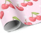This design features a cherries and mini white dots and hearts