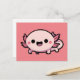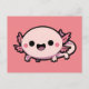 This delightful design features a whimsical axolotl, a neotenic salamander known for its regenerative abilities. The axolotl is illustrated in a charming, cartoonish style with a round body and an oversized head. Its soft pink skin is accented with darker pink highlights on the gills, which resemble delicate, leafy fronds. The creature’s wide, expressive eyes and broad smile give it an endearing and friendly appearance. Its short limbs and gently curling tail add to the playful and imaginative nature of the design. This adorable axolotl is perfect for those who love unique and cute aquatic creatures.