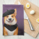 Cute Chic Corgi Dog Wearing Beret & Bandanna Tea Towel