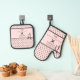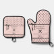 Cute Chic Girly Blush Pink and Black Polka Dot Oven Mitt & Pot Holder Set