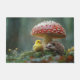 Cute Chick and Hedgehog Hiding Under a Mushroom Doormat