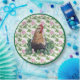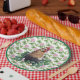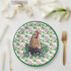 These St Patrick's Day paper plates feature a cute watercolored chicken surrounded by a border of purple clover.