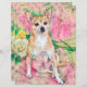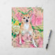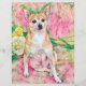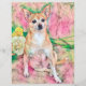 Cute chihuahua art colourful scrapbooking paper. Pink green background beige tan girly dog portrait. Min pin mix breed craft supplies. Beautiful, elegant, trendy, cool, chic, psychedelic design. This 110 lb paper can be used for your photo album, craft or decoupage projects requiring heavier paper. Image copyright Marg Seregelyi Photography.