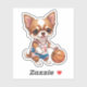 Add some sporty charm to your belongings with this adorable kawaii chihuahua playing basketball! This custom kiss cut sticker is perfect for decorating laptops, water bottles, journals, and more. Made with durable vinyl for long-lasting colour and cuteness.