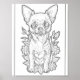 Cute Chihuahua With Flowers Colouring Page Poster