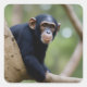 This fun sticker features a cute chimpanzee in the jungle.
