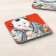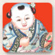 Cute Chinese Laughing Good Luck Buddha on red Coaster