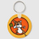 Cute chipmunk illustration basic button round key chain. Background colour can be customised.
