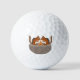This awesome golf ball features a pair of cute Chipmunks. The adorable little brown rodents have black and white stripes on their faces and backs and fluffy tails. They are standing nose to nose looking lovingly into each others' eyes. They are both holding a small brown hazelnut and between them is a pile of nuts that they have gathered together. They are standing on a tree stump. A lovely design for celebrating a Wedding for any couple that are nuts about eachother.