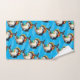 Add an appropriate touch of sealife to the bathroom with this towel set, which features a cute female porpoise, accompanied by the whimsical limerick, "this chiquita vaquita enjoys her ice cold virgin margarita!" on a wavy blue background.
