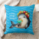 Indulge your child's fascination with sealife with this throw pillow, which features a cute female porpoise, accompanied by the whimsical limerick, "this chiquita vaquita enjoys her ice cold virgin margarita!" on a wavy blue background. Reverse shows identical design.