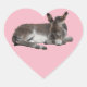 Cute chocolate donkey baby foal sleeping on pink heart sticker