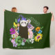Cute Chocolate Sable Ferret Floral Green Fleece Blanket