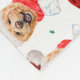 Cute Chow Chow Dog Christmas Pattern features a beautiful watercolor of a Chow Chow with a red Santa's Hat and a red Christmas scarf, and background with colourful watercolor stars.