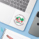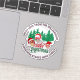 Cute MERRY CHRISTMAS MUSHROOM Christian Christmas Custom-Cut Vinyl Sticker with CUSTOMIZABLE TEXT. Ideal to use for cards and gifts to family, friends, colleagues and clients. This seasonal cottagecore design shows three toadstools wearing Santa hats with forest glades woodland in the background. The text MERRY CHRISTMAS appears in red and green typography. Underneath there is CUSTOMIZABLE TEXT that reads CHRISTMAS STARTS WITH CHRIST. This can be personalized with your name or other text. This whimsical Christmas Mushroom Sticker would make a great festive finishing touch for your gifts or throughout your home. Matching gifts available.