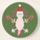 This awesome sandstone coaster features a digital art image of a cute Christmas Axolotl. The Axolotl is pale pink with bright pink gills. It is holding a red and white striped candy cane in each hand and is wearing a festive Red and white Santa hat. The axolotl is type of Salamander from Mexico.