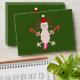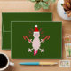 This envelope features a digital art image of a cute Christmas Axolotl. The Axolotl is pale pink with bright pink gills. It is holding a red and white striped candy cane in each hand and is wearing a festive Red and white Santa hat. The axolotl is type of Salamander from Mexico.