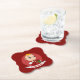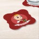 Paper coasters with an illustration of a cute smiling happy black baby girl or boy, the baby is wearing red and white clothes and holding a present; with editable text template for your name or message, Christmas holidays design with a red background
