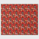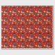 Christmas wrapping paper with an illustration of a cute smiling happy black baby girl or boy, the baby is wearing red and white clothes and holding a present; with editable text template for your name or message, Christmas holidays design with a seamless red background with stars