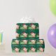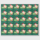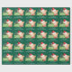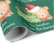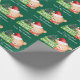 Cute Christmas paper with baby bear wearing Santa hat and Christmas tree on green background. Ideal wrap for kids with their names.