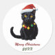 Cute Christmas Black Cat in Santa Hat Custom Classic Round Sticker
