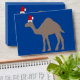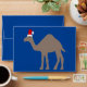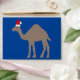 This Christmas envelope features a digital art image of a cute sandy brown coloured Dromedary Camel with beautiful long eyelashes and a single hump on its back. The camel is dressed ready for celebrating Christmas with a red and white Santa hat on its head. The camel features in the Bible and is a traditional symbol of Christmas. There is custom text beautiful in gold foil on the inside of the envelope so you can personalise it with a message of your choice. The default message reads Happy Holidays.