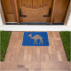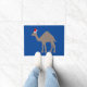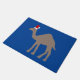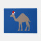 This awesome doormat features a digital art image of a cute sandy brown coloured Dromedary Camel with beautiful long eyelashes and a single hump on its back. The camel is dressed ready for celebrating Christmas with a red and white Santa hat on its head. The camel features in the Bible and is a traditional symbol of Christmas.