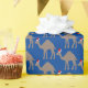This awesome Christmas wrapping paper features a digital art image of a cute sandy brown coloured Dromedary Camel with beautiful long eyelashes and a single hump on its back. The camel is dressed ready for celebrating Christmas with a red and white Santa hat on its head. The camel features in the Bible and is a traditional symbol of Christmas.