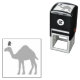 This awesome Christmas self inking stamp features a digital art image of a cute sandy brown coloured Dromedary Camel with beautiful long eyelashes and a single hump on its back. The camel is dressed ready for celebrating Christmas with a red and white Santa hat on its head. The camel features in the Bible and is a traditional symbol of Christmas.