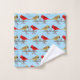 This awesome patterned Christmas bath towel set features a pretty pair of Northern Cardinals. The male bird is bright red with a red crest on its head and the female bird is a brownish yellow colour with some red on her wings and tail. Both birds have a red beak. The birds are standing on a brown branch covered in festive red berries making this a beautiful Christmas design, especially for couples.