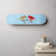 This awesome skateboard features a pretty pair of Northern Cardinals. The male bird is bright red with a red crest on its head and the female bird is a brownish yellow colour with some red on her wings and tail. Both birds have a red beak. The birds are standing on a brown branch covered in festive red berries making this a beautiful Christmas design, especially for couples.
