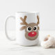 Have a little fun with your coffee or hot cocoa with this cute cartoon character reindeer Christmas latte mug. Cartoon reindeer character with red shinny nose on a winter white background. If you need help to customise it send me an email and I would be happy to help. designsbykatz@gmail.com Happy Holidays!