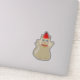 This awesome shaped sticker sheet features a digital art image of a cute Christmas Siamese Cat with beautiful blue eyes, brown claws, ears and whiskers and its front paws raised in the air. The cat is wearing a red collar with pretty white snowflakes on it and a beautiful golden bell. The cat is wearing a warm red bobble hat with white snowflakes on it to keep it warm in the winter cold.